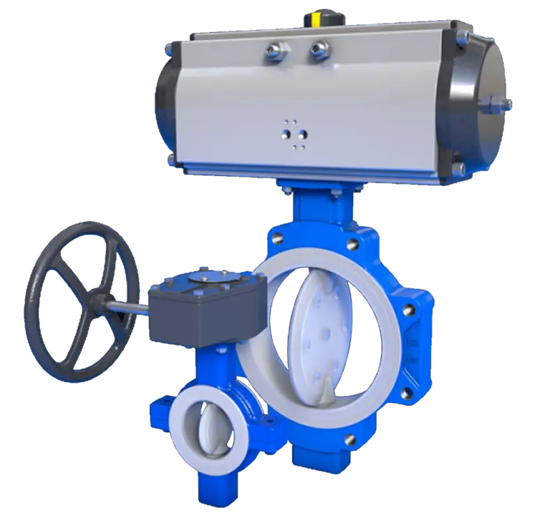 - Válvulas tipo mariposa con revestimiento de teflón PFA.