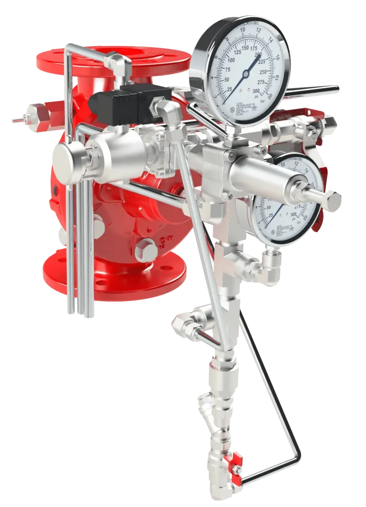 - Válvulas de diluvio con activación hidráulica/neumática/eléctrica y restablecimiento remoto o manual local.